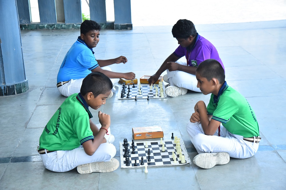 Indoor activities like chess and outdoor sports like track events foster strategic thinking, fitness, and focus, allowing students to recharge mentally and physically.